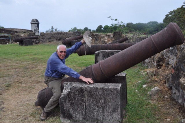 Northbound ships go through the second part of the canal in the afternoon, so after breakfast we rode a bus out to within a mile of San Lorenzo National Park. On the way we saw howler monkeys in the trees, and an ant eater appeared briefly beside the road ahead of us. We walked the last mile looking at butterflies and other wildlife on the way to the old fort. There we investigated the old canons and the buildings. Then we went back to the ship.