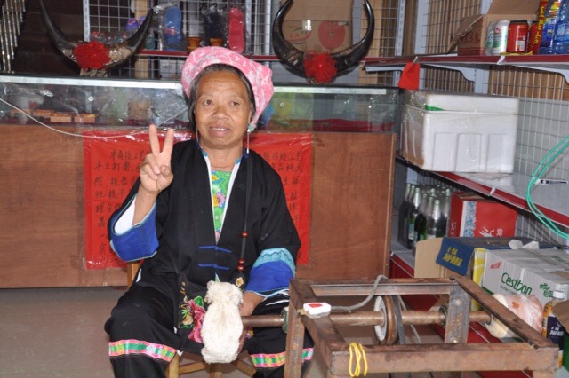 When we got to the village, I stopped to buy some serving spoons made of water buffalo from a local woman. She let me take a picture of her after the purchase. Our guide, Li Jien Feng, said that it is unusual to find these spoons for sale. Combs are a lot more prevalent.
