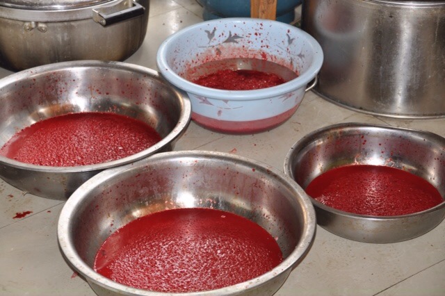 Then we had lunch at a local restaurant. We enjoyed the “simple meal,” as our guide called it. They served us the usual rice, vegetable dishes, and a meat dish, but we got a surprise dish that was quite welcome….French Fries! Cha-Cha-Cha came out for a few minutes to say hello to a few people there. I looked into the doorway of the kitchen to look at the big bowls of pig blood. They had killed a pig to prepare for an upcoming wedding. It is customary that all the villagers will be invited. It is customary that guests give money as gifts.