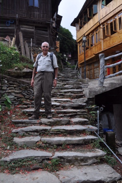 Then we took a walk uphill passing by the homes of the villagers. Most of the parents are working in the city, and the grandparents are left in the village to care for the children. We walked down many stone steps past the school. It was 2:40 when we reached the school, but we were not allowed to come in because the children would be napping until 3:00. At least we saw the outside of the building.