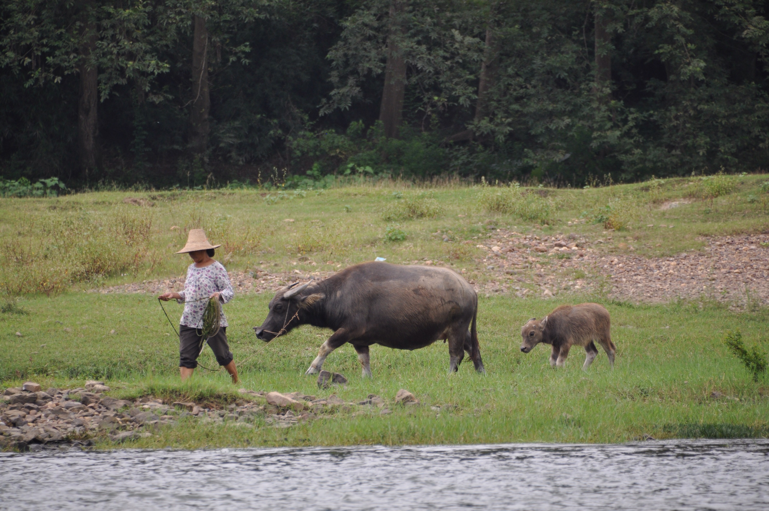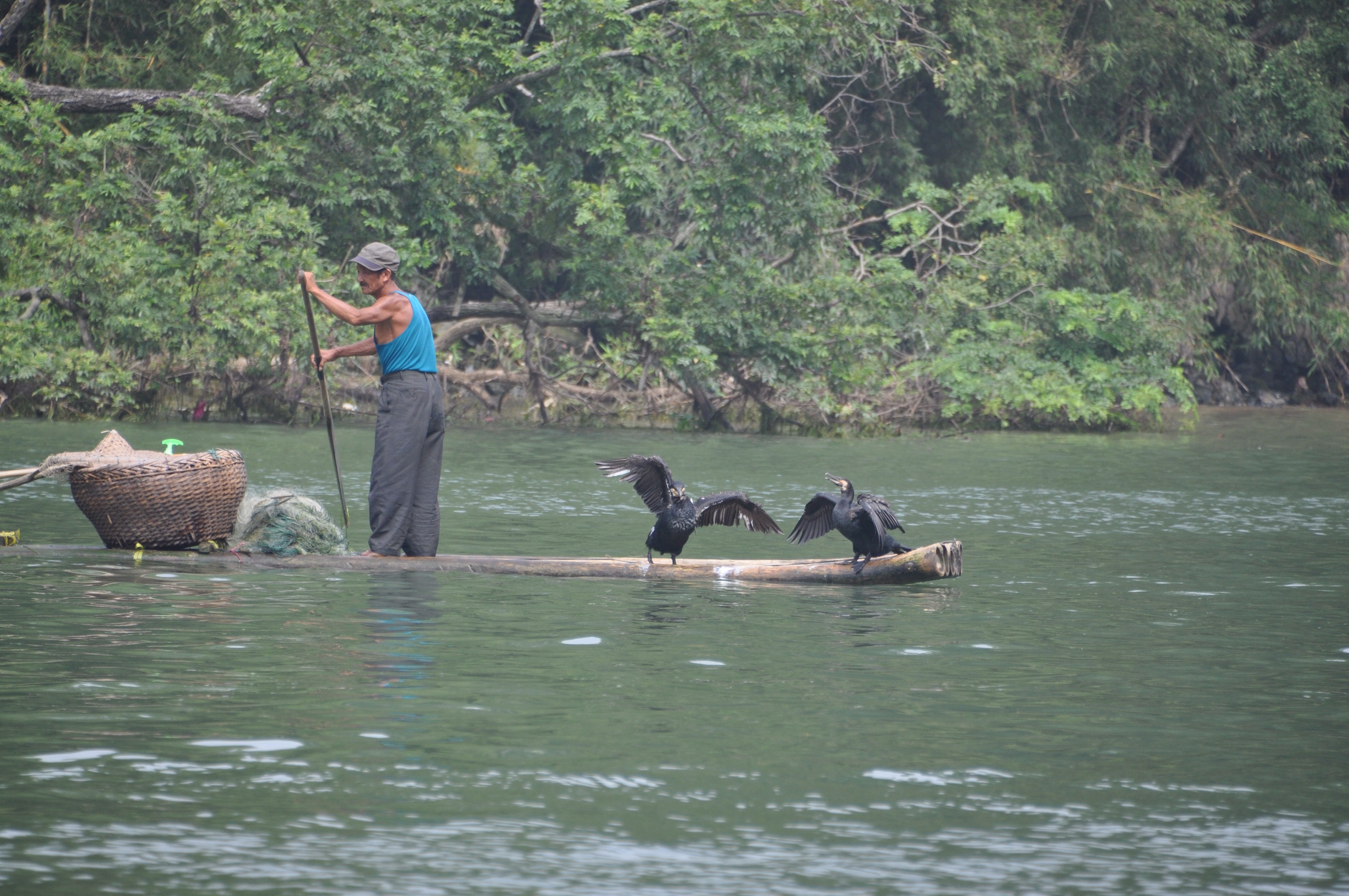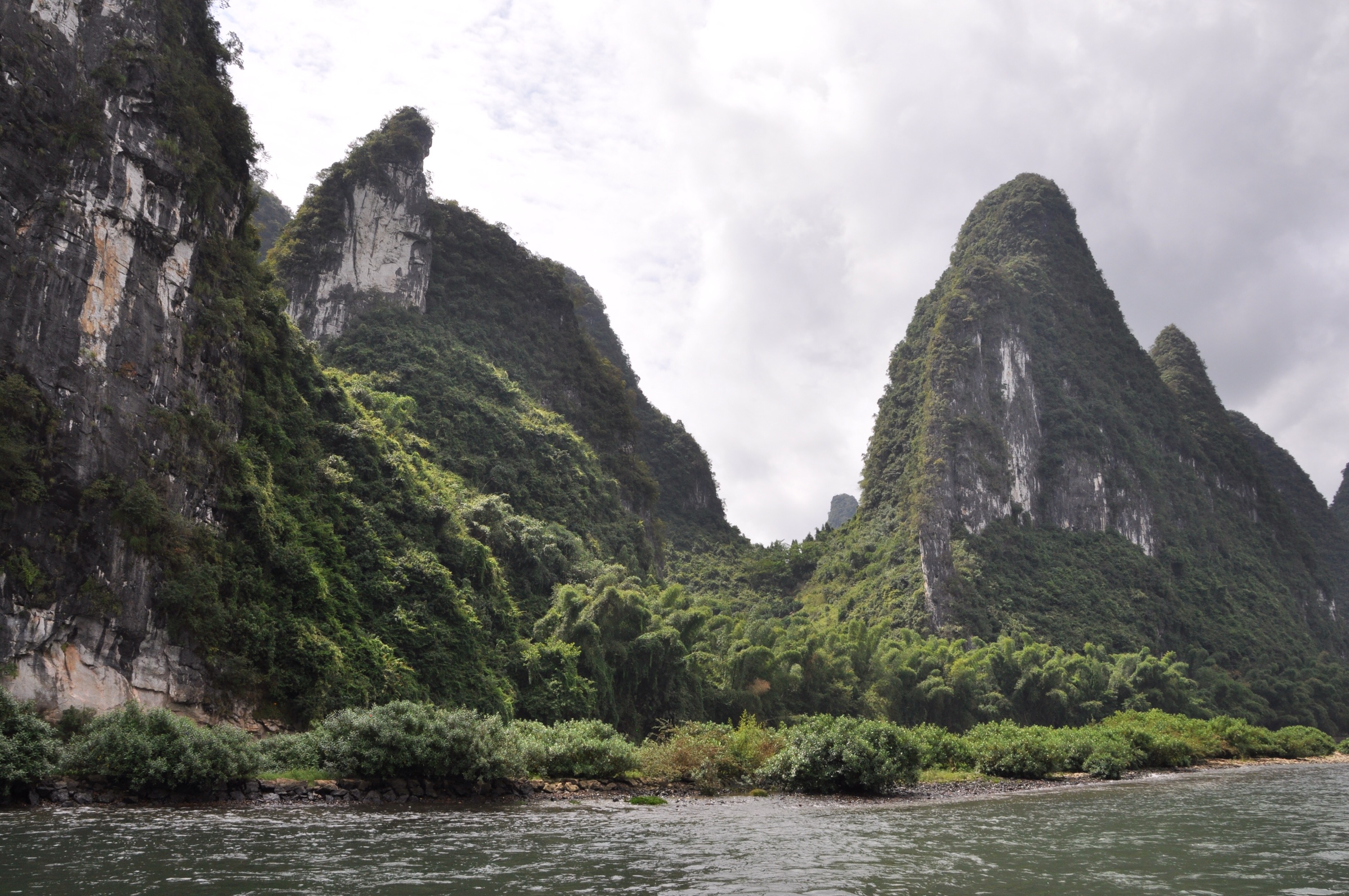After checking out of our hotel, our bus took us to the dock for the Li River Cruise. Everyone on the ship had been assigned seats, and our guide said mine was at a window. We opened this large window, and I took most of my pictures from my seat. Once I walked up to the viewing deck at the top of the ship, but our window view was much better. During the cruise, we had a mediocre Chinese buffet lunch, but that was no surprise because our guide had warned us to eat a big breakfast.
