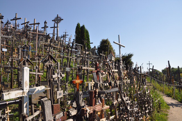 This morning we started the drive to Latvia. On the way we stopped to visit the Hill of Crosses. The site has long been a site for peaceful resistance. Even though the Soviets would tear the crosses down, more crosses would suddenly appear the next night. At last count on February 24, 2012 there were 105,000 crosses on the hill.