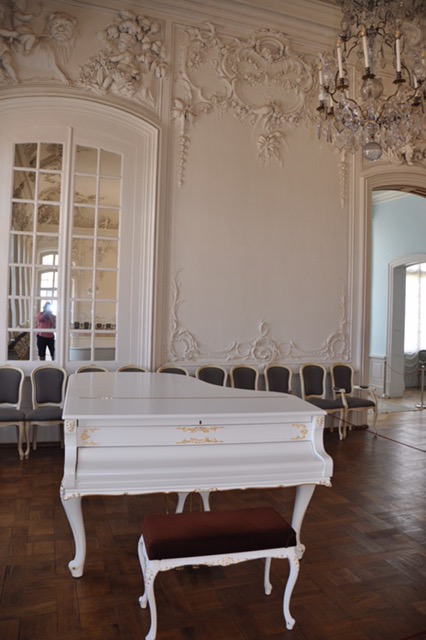 We continued on the bus, stopping at the Lithuania/Latvia border to takes pictures of the border sign. Our next stop was Rundales Palace Museum. For two hours we were escorted by a palace guide through the ornate rooms. I was very impressed at the amount of paintings on the walls. These included paintings of Peter the Great, Catherine the Great, and many family members and friends. I took 100 pictures of our activities today!