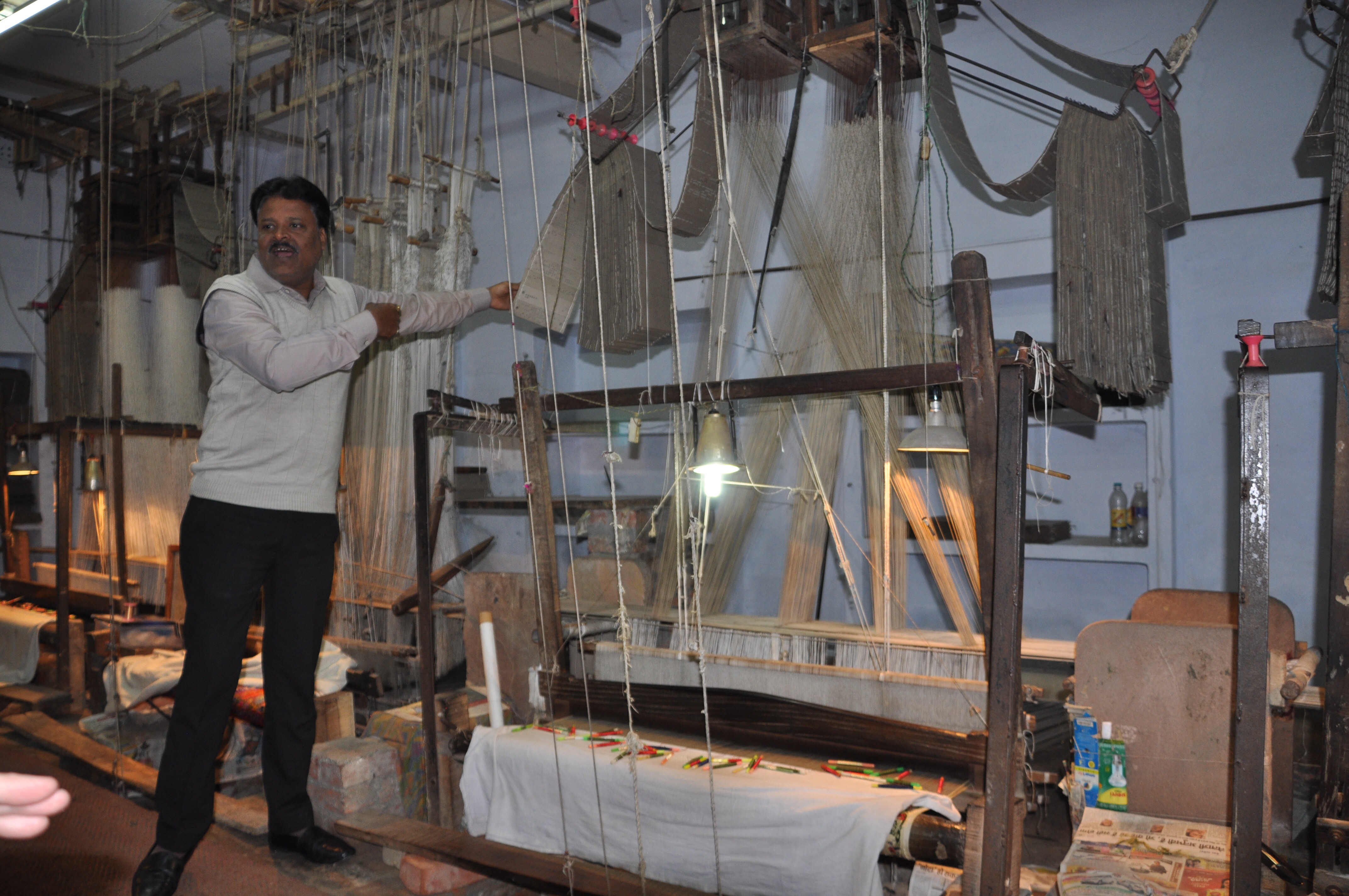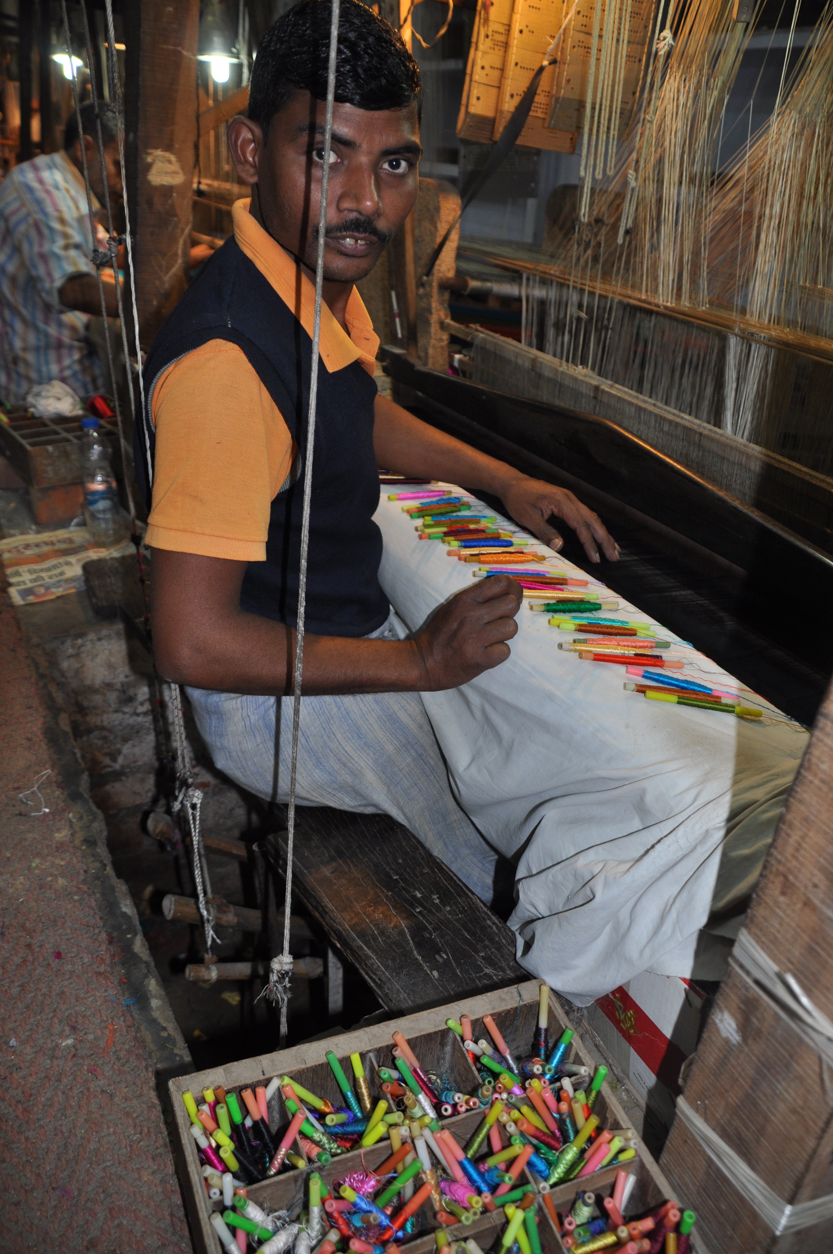 At 10:30 we went to the silk place next door to the hotel. It was fascinating to watch weavers working at the looms making fabric for Saris. It was interesting to learn about the design system using cards attached to the looms. The artists can pick the colors. I didn’t pass up the opportunity to purchase some exquisite scarves. Varanasi is known for their hand-loomed silk.